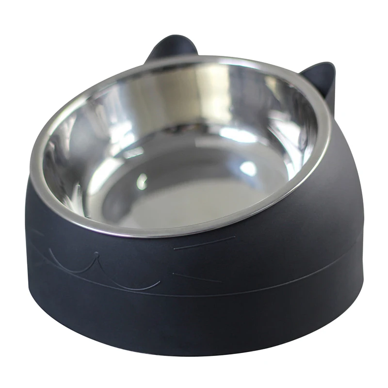 Tilted Stainless Cat Bowls Non-slip Base Pets Puppy Cats Food Drink Water Feeder Neck Protection Pet Bowl